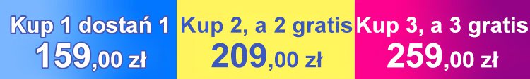 Kup 3, a 3 gratis 259,00zł(Średnio 43,00 zł)